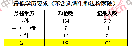 湖南廣納各種學歷的人才,上至博士研究生,下至高中畢業(yè)生,都有其用武之地。據(jù)統(tǒng)計,要求本科學歷的招錄人數(shù)占84.53%,要求專科學歷的招錄人數(shù)占13.64%。雖然本科學歷占大頭,但低學歷的人員也有機會參與競爭。
