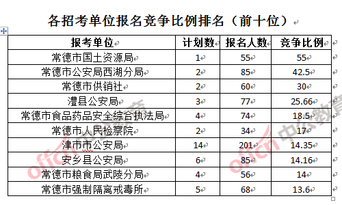 為幫助廣大考生更清晰的了解報(bào)名情況,中公教育整理了婁底市各招考單位的報(bào)名人數(shù)排名以及競爭比例排名,供廣大考生參考: