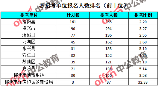 二、湖南郴州公務(wù)員報(bào)名人數(shù):各招考單位分析