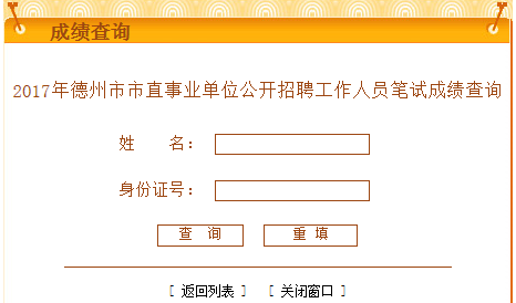 點(diǎn)擊進(jìn)入>>>2017山東德州市直事業(yè)單位招聘筆試成績查詢?nèi)肟?/a>