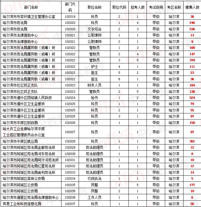 【哈爾濱】2014年黑龍江省公務員考試繳費人數(shù)統(tǒng)計(5月19日)