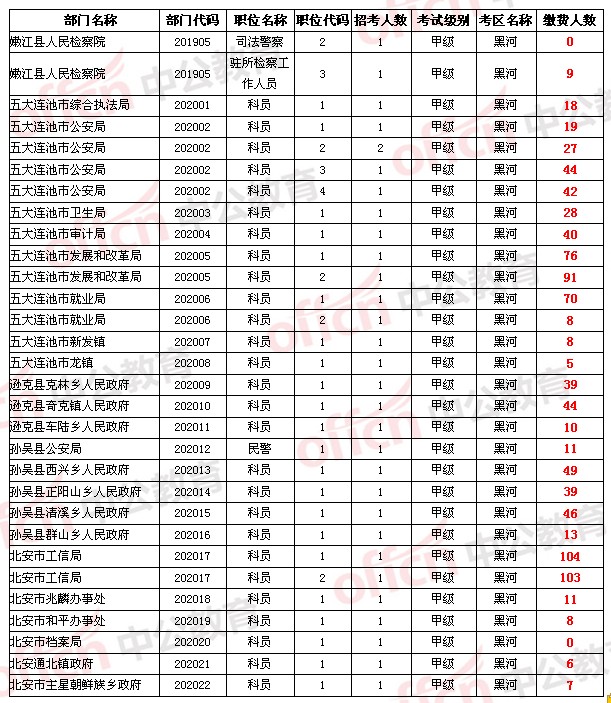 【黑河地區(qū)】2014年黑龍江省公務員考試報名人數(shù)統(tǒng)計