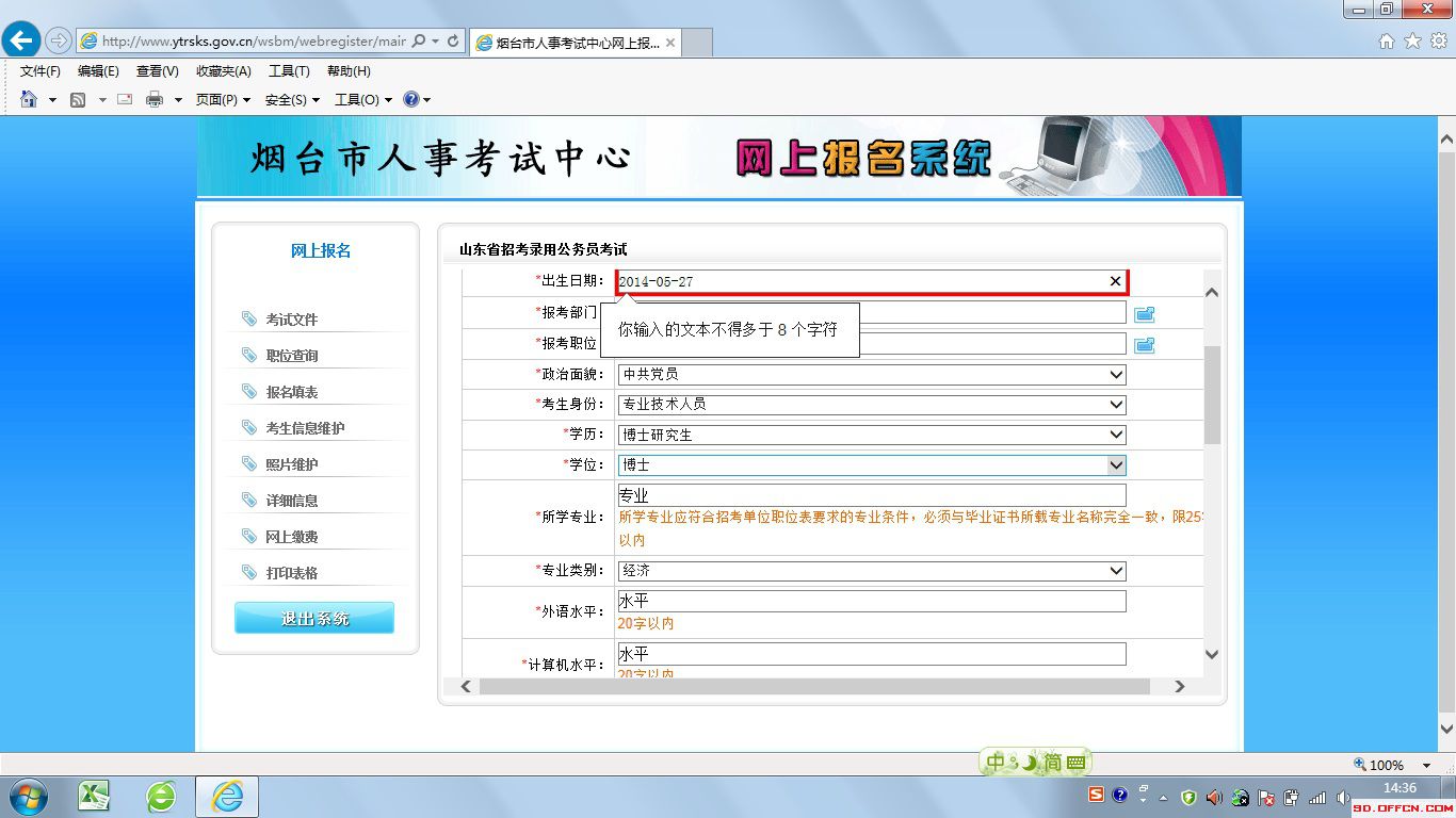 2014年山東省煙臺(tái)公務(wù)員關(guān)于網(wǎng)上報(bào)名部分瀏覽器日期報(bào)錯(cuò)的解決方法