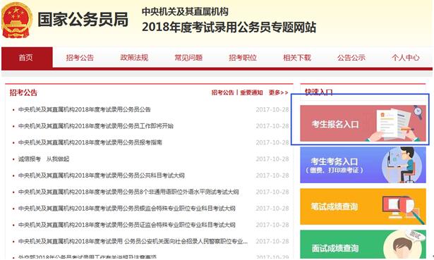 2018國(guó)家公務(wù)員考試于10月30日開(kāi)始報(bào)名,中公教育專(zhuān)家在第一時(shí)間為考生總結(jié)今年國(guó)家公務(wù)員考試報(bào)名系統(tǒng)的使用方法以及一些填寫(xiě)注意事項(xiàng),參照此步驟,考生必然會(huì)順利報(bào)考。