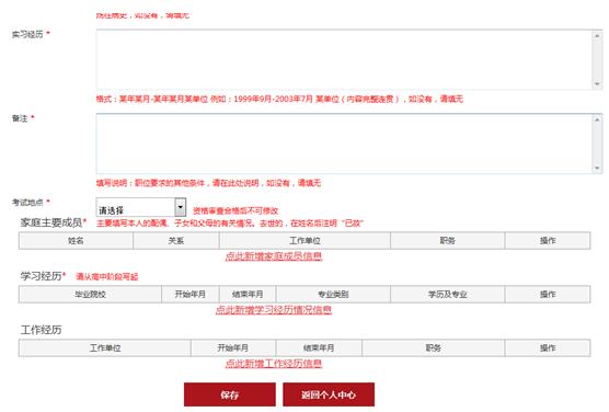 完善個人信息是一項(xiàng)“龐雜的工程”,需要考生準(zhǔn)備很充分很充足的資料,有*標(biāo)注的是必須填寫的內(nèi)容,考生要一定要如實(shí)填寫,將各類證件備齊,并確定好具體日期。