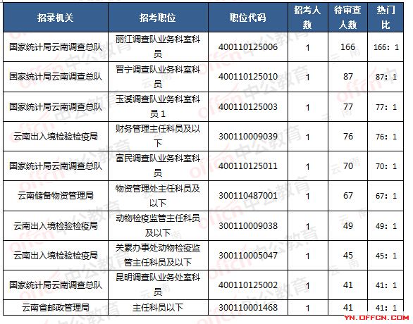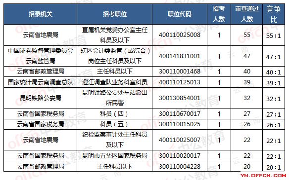 報(bào)名通過審核通過人數(shù)前十的職位