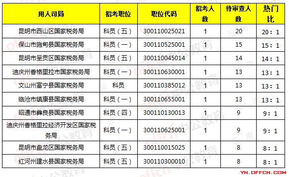 云南省國(guó)稅局職位報(bào)名人數(shù)分析