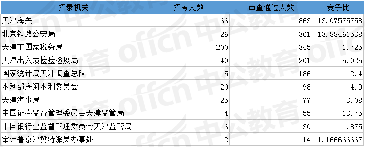 截止到1日16時(shí),通過審核人數(shù)前三位的部門依次是:天津海關(guān)、北京鐵路公安局、天津市國家稅務(wù)局,三部門通過審核總?cè)藬?shù)達(dá)1569人。