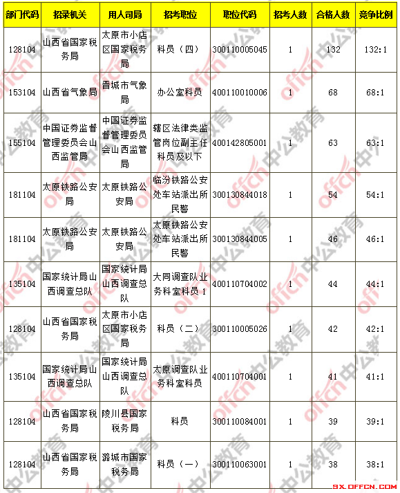 截止到11月1日16時(shí),競(jìng)爭(zhēng)比例的職位為山西省國(guó)家稅務(wù)局-太原市小店區(qū)國(guó)家稅務(wù)局-科員(四)一職,招錄1人,截止到11月1日16時(shí)審核通過(guò)人數(shù)為132人,再創(chuàng)山西省競(jìng)爭(zhēng)比例新高!