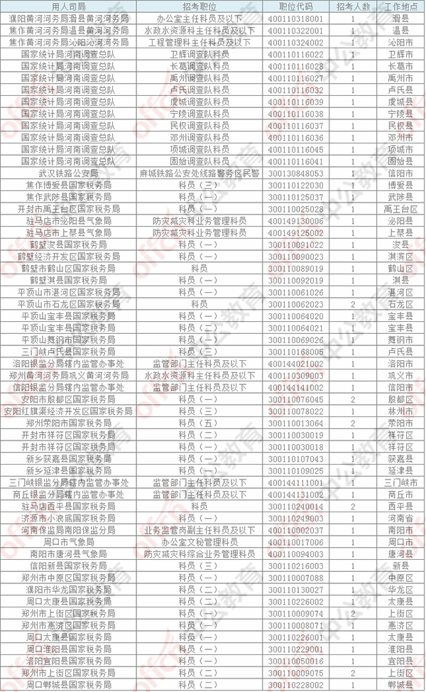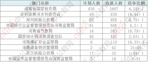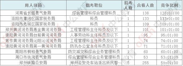 報名通過審核人數(shù)前十的職位主要集中在水利部黃河水利委員會、鄭州鐵路公安局、河南省氣象局、河南省國家稅務(wù)局,具體信息如下:
