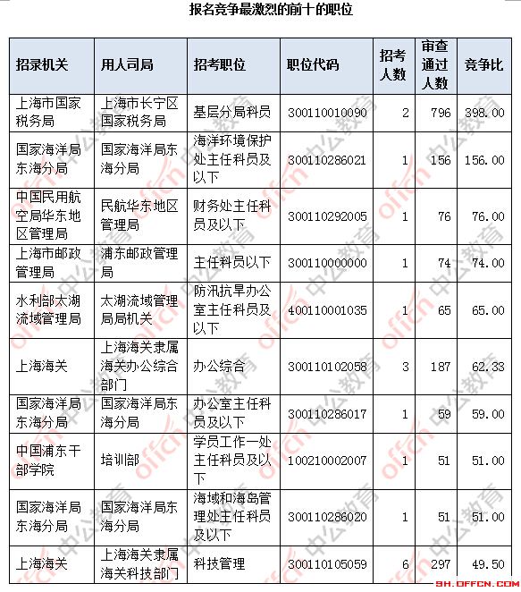 [2日9時(shí)]2018國考報(bào)名數(shù)據(jù):上海5027人過審 最熱競爭比398:1