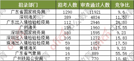 截止到2日16時,通過審核人數(shù)前三位的部門依次是:廣東省國家稅務(wù)局、深圳海關(guān)、廣東出入境檢驗檢疫局,三部門通過審核總?cè)藬?shù)達19701人,占通過審核總?cè)藬?shù)的62.2%。