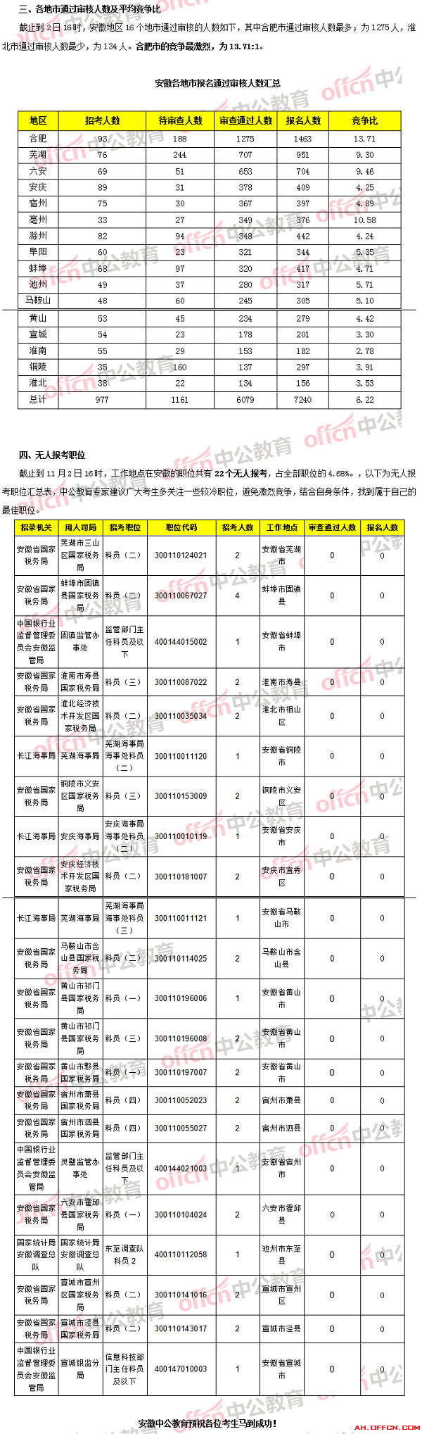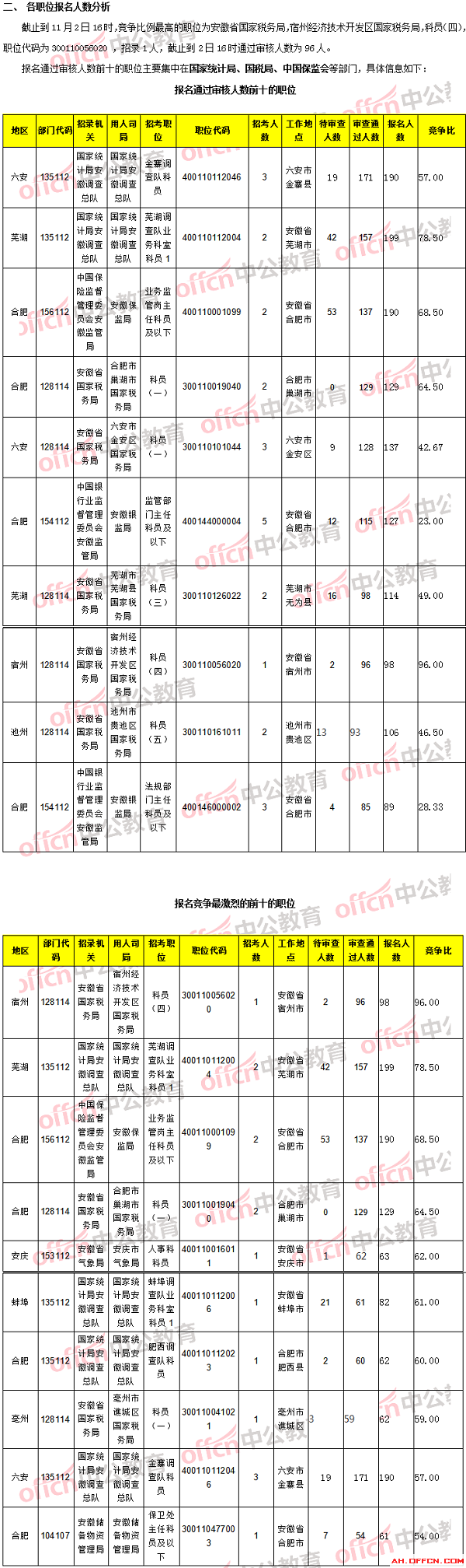 【11月2日16時(shí)】2018國(guó)考報(bào)名人數(shù)統(tǒng)計(jì):安徽7240人報(bào)名,6079人通過(guò)審核