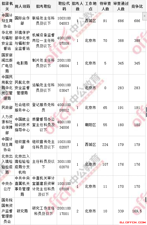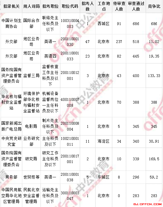 2018國考北京地區(qū)過審人數(shù)最多十大職位