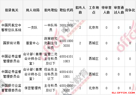 2018國考北京地區(qū)無人報(bào)考職位(5個(gè))