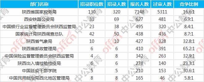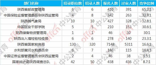 截至到3日9時,通過審核人數(shù)前三位的部門依次是:陜西省國家稅務局、西安鐵路公安局、中國銀行業(yè)監(jiān)督管理委員會陜西監(jiān)管局,三部門通過審核總人數(shù)達6112人,占通過審核總人數(shù)的75.1%。