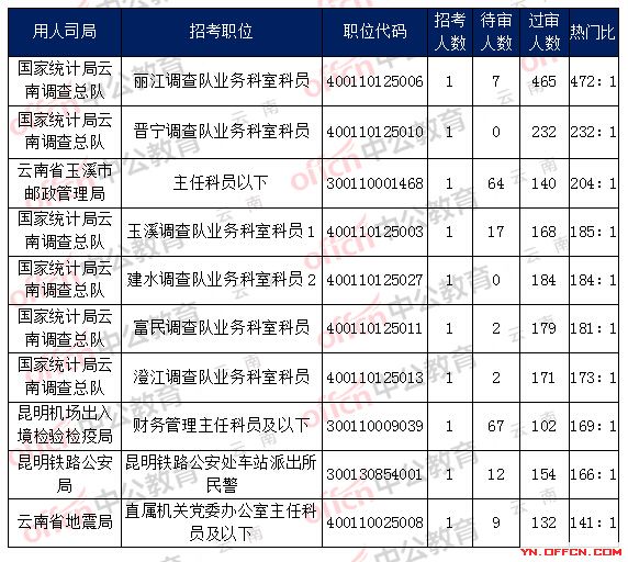 當(dāng)前最受歡迎的崗位是國(guó)家統(tǒng)計(jì)局云南調(diào)查總隊(duì),麗江調(diào)查隊(duì)業(yè)務(wù)科室科員,職位代碼:400110125006