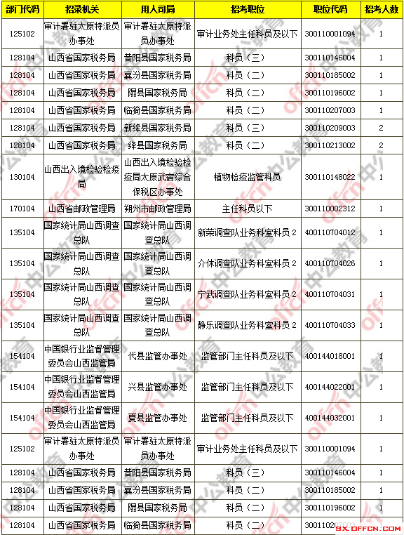 截止到11月3日16時(shí),工作地點(diǎn)在山西的職位共有16個(gè)無(wú)人報(bào)考,占全部職位的4.04%。下面是無(wú)人報(bào)考職位一覽表,山西中公網(wǎng)校專(zhuān)家建議廣大考生多關(guān)注一些較冷職位,避免激烈競(jìng)爭(zhēng),結(jié)合自身?xiàng)l件,找到屬于自己的職位。