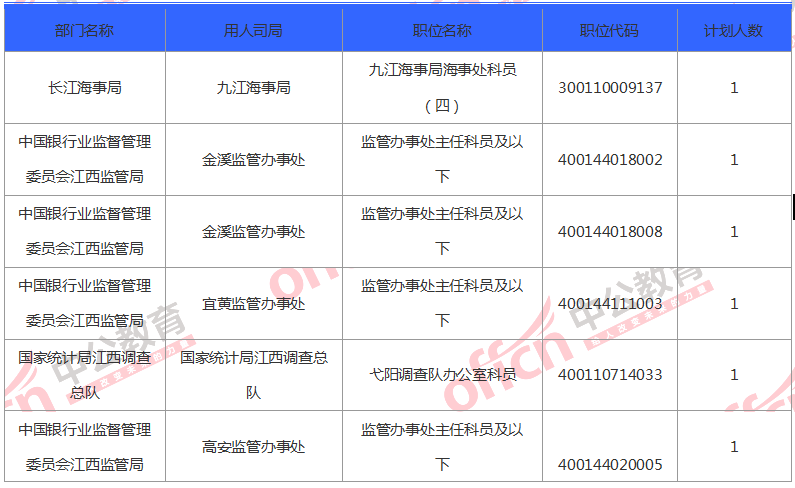 截止到3日16時,工作地點在江西的職位只有8個無人報考,僅占全部職位的2%。下面是無人報考職位一覽表,中公教育專家建議廣大考生多關注一些較冷職位,避免激烈競爭,結合自身條件,找到屬于自己的職位。
