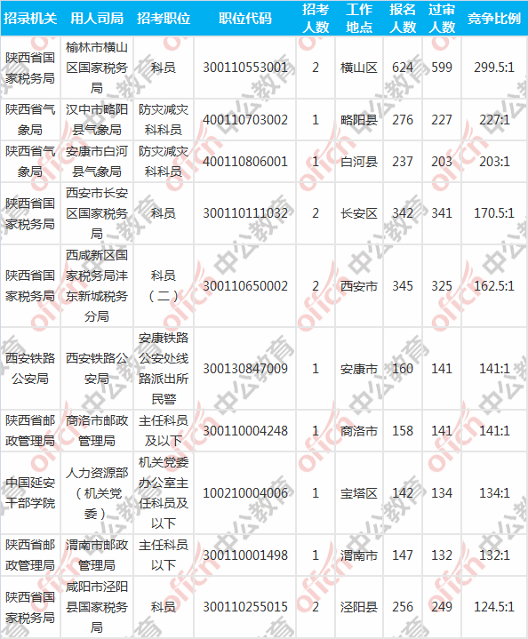 [4日16時]2018國考報名數(shù)據(jù):陜西12774人過審 最熱職位299.5:1