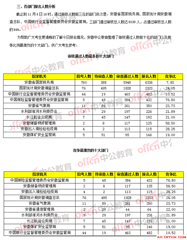 【11月4日16時(shí)】2018國(guó)考報(bào)名人數(shù)統(tǒng)計(jì):安徽9787人通過(guò)審核,最熱職位122:1