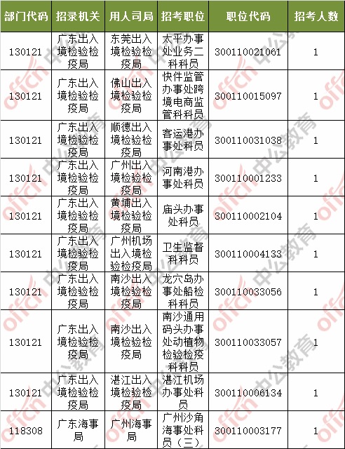 截止到4日16時,工作地點在廣東的職位共有95個無人報考,占全部職位的7.2%。下面是無人報考職位一覽表,中公網(wǎng)校專家建議廣大考生多關注一些較冷職位,避免激烈競爭,結合自身條件,找到屬于自己的職位。
