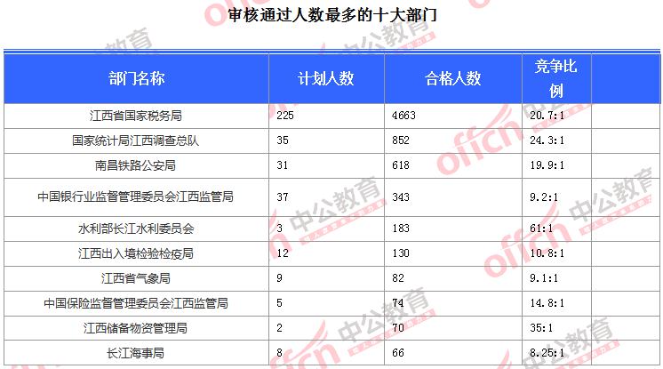 截止到4日16時,通過審核人數(shù)前三位的部門依次是:江西省國家稅務局、國家統(tǒng)計局江西調(diào)查總隊、南昌鐵路公安局,三部門通過審核總人數(shù)達6133人,占通過審核總人數(shù)的85.2%。