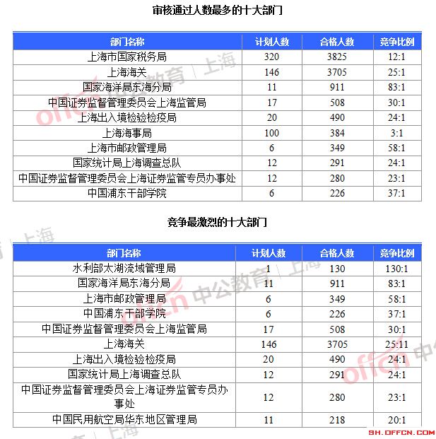 為幫助廣大考生更清晰的了解今日報名情況,中公網(wǎng)校整理了審核通過人數(shù)前十位的部門以及競爭比例最激烈的十大部門,供廣大考生參考:\