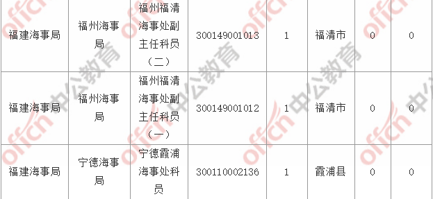 截止到5日16時(shí),工作地點(diǎn)在福建的職位共有11個(gè)無(wú)人報(bào)考,占全部職位的4.97%。下面是無(wú)人報(bào)考職位一覽表,中公網(wǎng)校專(zhuān)家建議廣大考生多關(guān)注一些較冷職位,避免激烈競(jìng)爭(zhēng),結(jié)合自身?xiàng)l件,找到屬于自己的職位。