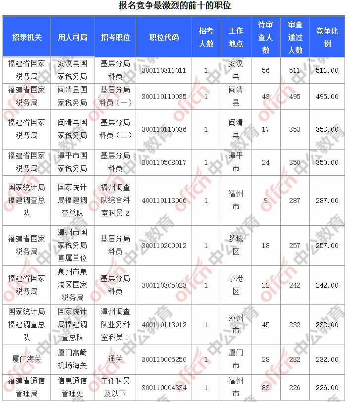 [11月5日16時(shí)]2018國(guó)考報(bào)名人數(shù)統(tǒng)計(jì):福建報(bào)名13829人,最熱職位511:1