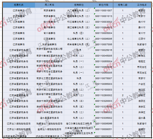 截止到3日16時(shí),工作地點(diǎn)在江蘇的職位共有23個(gè)無人報(bào)考,占全部職位的1.9%。下面是無人報(bào)考職位一覽表,中公網(wǎng)校專家建議廣大考生多關(guān)注一些較冷職位,避免激烈競爭,結(jié)合自身?xiàng)l件,找到屬于自己的職位。