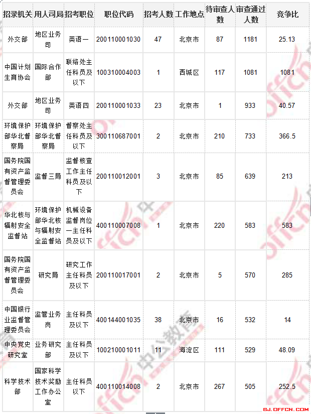 2018國考北京地區(qū)過審人數(shù)最多十大職位