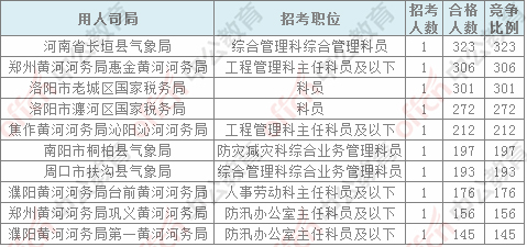 截止到11月5日16時(shí),競(jìng)爭(zhēng)比例的職位為河南省長(zhǎng)垣縣氣象局的綜合管理科綜合管理科員一職位,招錄1人,截止到11月5日16時(shí)通過(guò)人數(shù)為323人,仍有19個(gè)人還在審核中。