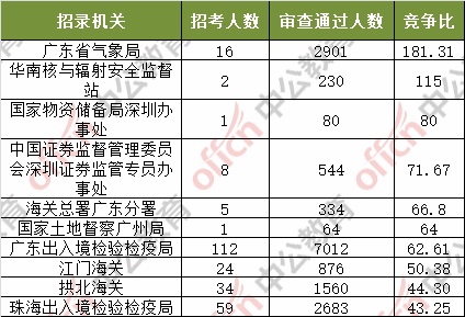 截至11月6日16時(shí),據(jù)中公網(wǎng)校統(tǒng)計(jì),國考職位中工作地點(diǎn)在廣東的職位通過審核總?cè)藬?shù)為91224,共有49個(gè)職位無人通過審核,平均競(jìng)爭(zhēng)比例為31.5:1。