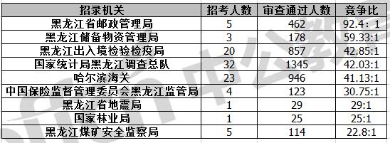 截止到11月6日16時,通過審核人數(shù)前三位的部門依次是:黑龍江省國家稅務(wù)局、哈爾濱鐵路公安局、國家統(tǒng)計(jì)局黑龍江調(diào)查總隊(duì),三部門通過審核總?cè)藬?shù)達(dá)20036人,占通過審核總?cè)藬?shù)的85.19%。其中黑龍江省國稅局審核通過人數(shù),與去年同期相比增加了4381人。