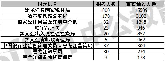 截止到11月6日16時,通過審核人數(shù)前三位的部門依次是:黑龍江省國家稅務(wù)局、哈爾濱鐵路公安局、國家統(tǒng)計(jì)局黑龍江調(diào)查總隊(duì),三部門通過審核總?cè)藬?shù)達(dá)20036人,占通過審核總?cè)藬?shù)的85.19%。其中黑龍江省國稅局審核通過人數(shù),與去年同期相比增加了4381人。