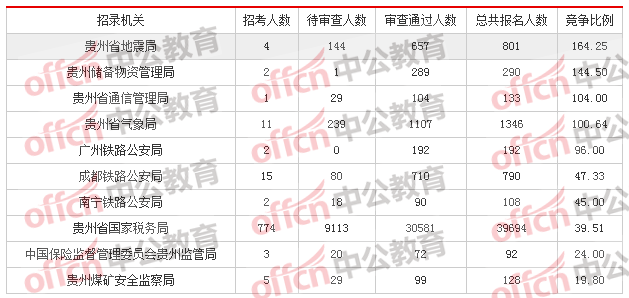 [6日16時(shí)]2018國考報(bào)名數(shù)據(jù):貴州34838人過審 最熱職位524:1