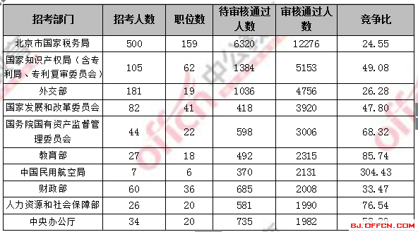 2018國考北京地區(qū)過審人數(shù)最多十大部門