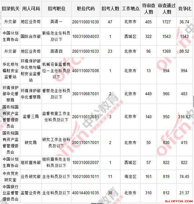 2018國考北京地區(qū)過審人數(shù)最多十大職位