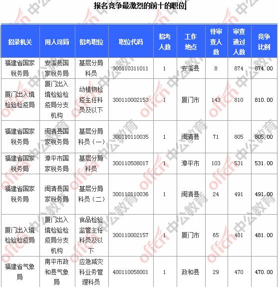 [11月7日16時(shí)]2018國考報(bào)名人數(shù)統(tǒng)計(jì):福建報(bào)名24032人,平均競爭比74.30:1