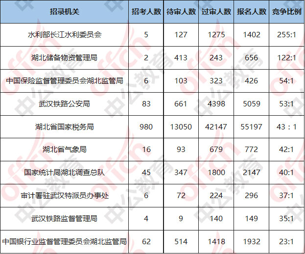 [7日16時(shí)]2018湖北國考報(bào)名人數(shù)分析:54874人過審 整體競爭比例41:1 無人報(bào)考僅6個(gè)