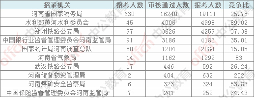 截止到11月7日16時(shí),通過審核人數(shù)前三位的部門依次是:河南省國家稅務(wù)局、水利部黃河水利委員會(huì)、鄭州鐵路公安局,三部門通過審核總?cè)藬?shù)達(dá)23872人,占通過審核總?cè)藬?shù)的76.72%。
