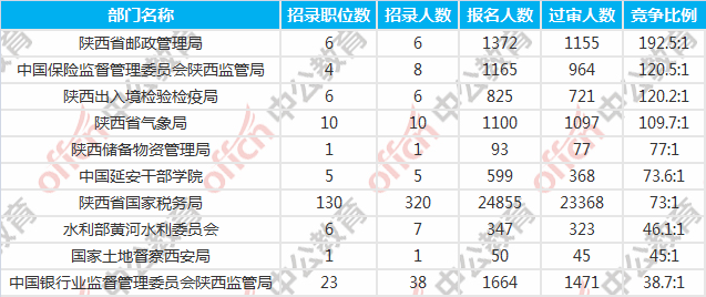 陜西國(guó)考報(bào)名競(jìng)爭(zhēng)最激烈的十大部門