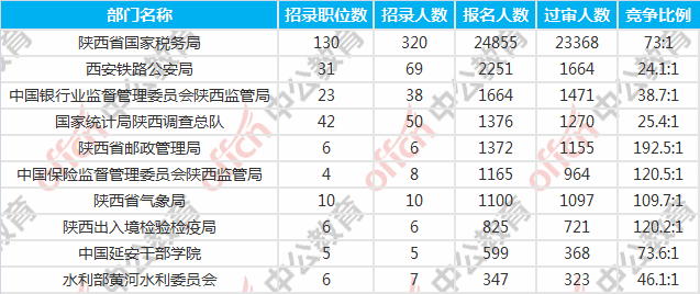 陜西國(guó)考報(bào)名人數(shù)最多的十大部門