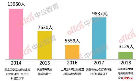 2014-2018年度國家公務(wù)員考試過審人數(shù)最多職位情況一覽