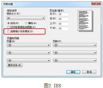 1、使用IE瀏覽器打印時(shí),請首先進(jìn)入瀏覽器菜單【文件】-【頁面設(shè)置】(圖1),將 “啟用縮小字體填充”(IE8,圖2)或“啟用收縮到紙張大小”(IE8以上,圖3)勾選項(xiàng)去掉后,點(diǎn)擊確定,然后再打印報(bào)名表或準(zhǔn)考證;