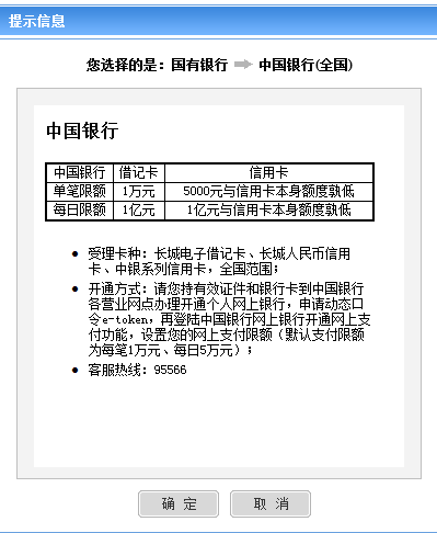 4、在銀聯(lián)頁面,點擊“中國銀行”(此處以中國銀行為例)。出現(xiàn)提示信息點擊確定。