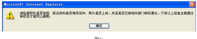 資格審核通過后,即可點(diǎn)擊‘網(wǎng)上繳費(fèi)’進(jìn)行繳費(fèi)操作,如果審核沒通過就會(huì)有圖6-1的提示。