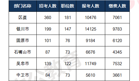 2018寧夏公務(wù)員考試報名人數(shù)統(tǒng)計(截止3月31日10:00)