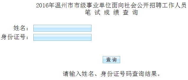 點擊進入>>>2016年溫州市市級事業(yè)單位面向社會公開招聘工作人員筆試成績查詢